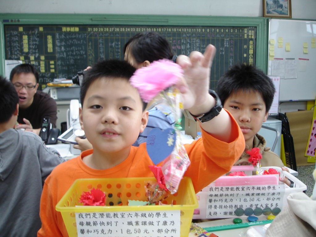 請看!這些是潛能班小朋友親手做的康乃馨紙花與親自烘焙的巧克力喔!